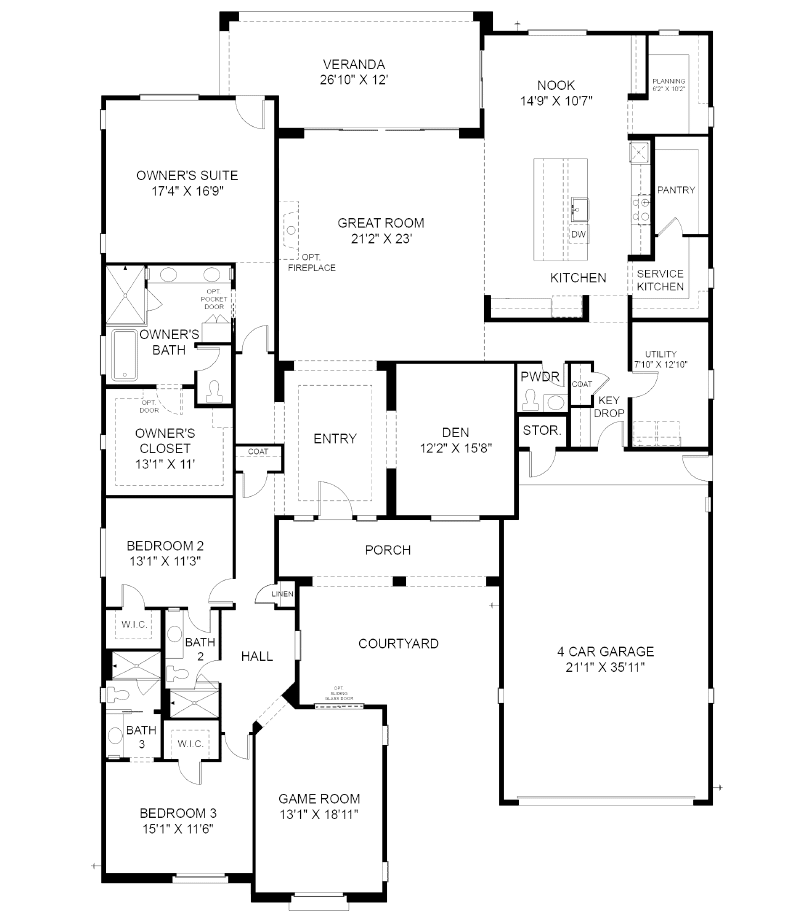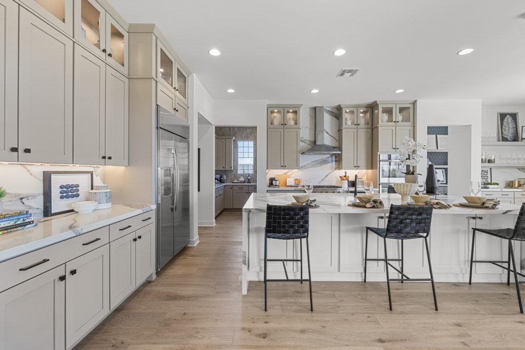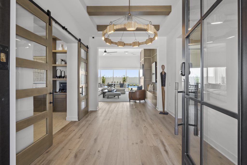 A move-in ready Allure plan is available for purchase in the McKinley Glenn community with 4 bedrooms, a den, 3.5 baths, and a 4-car tandem garage. This stunning single-story home is professionally decorated and features premium designer upgrades throughout, including Coastal Maple cabinets, quartz countertops, custom flooring, a gas fireplace, and much more. The spacious backyard is complete with a pool, and fire feature.