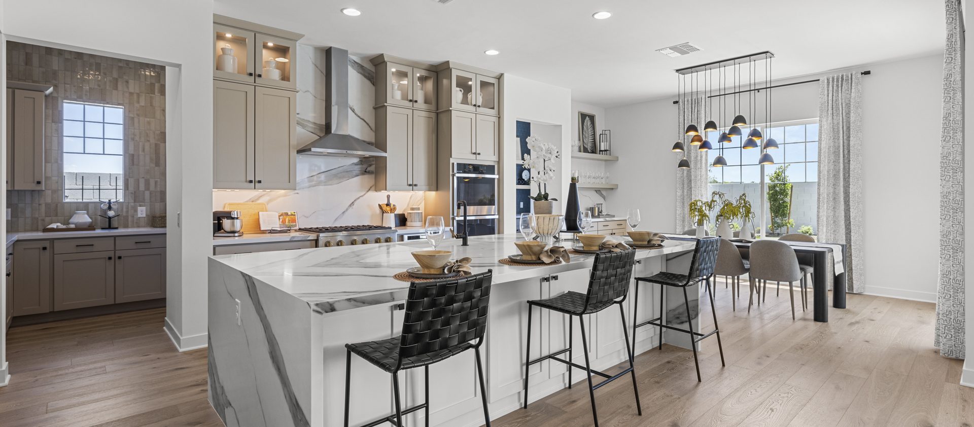 A move-in ready Allure plan is available for purchase in the McKinley Glenn community with 4 bedrooms, a den, 3.5 baths, and a 4-car tandem garage. This stunning single-story home is professionally decorated and features premium designer upgrades throughout, including Coastal Maple cabinets, quartz countertops, custom flooring, a gas fireplace, and much more. The spacious backyard is complete with a pool, and fire feature.