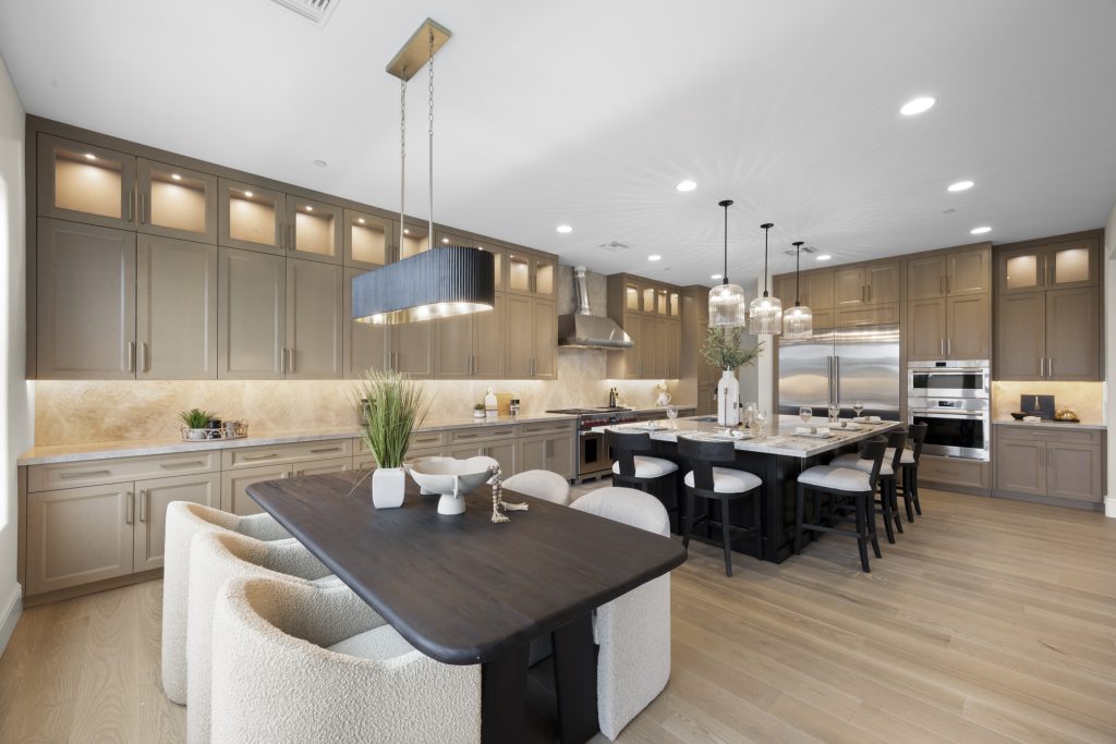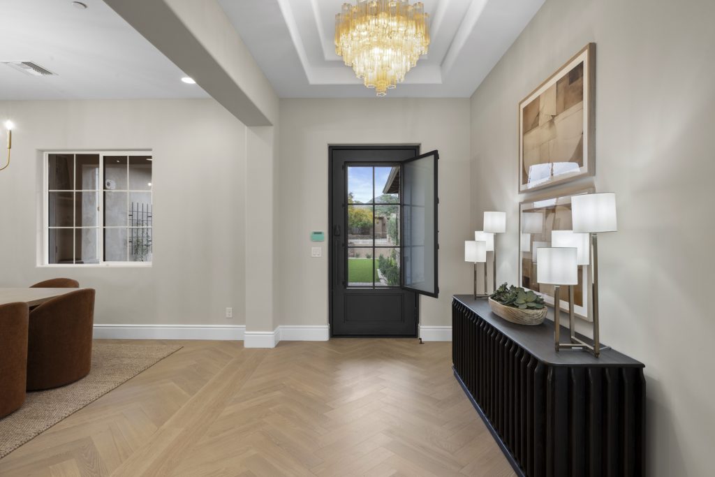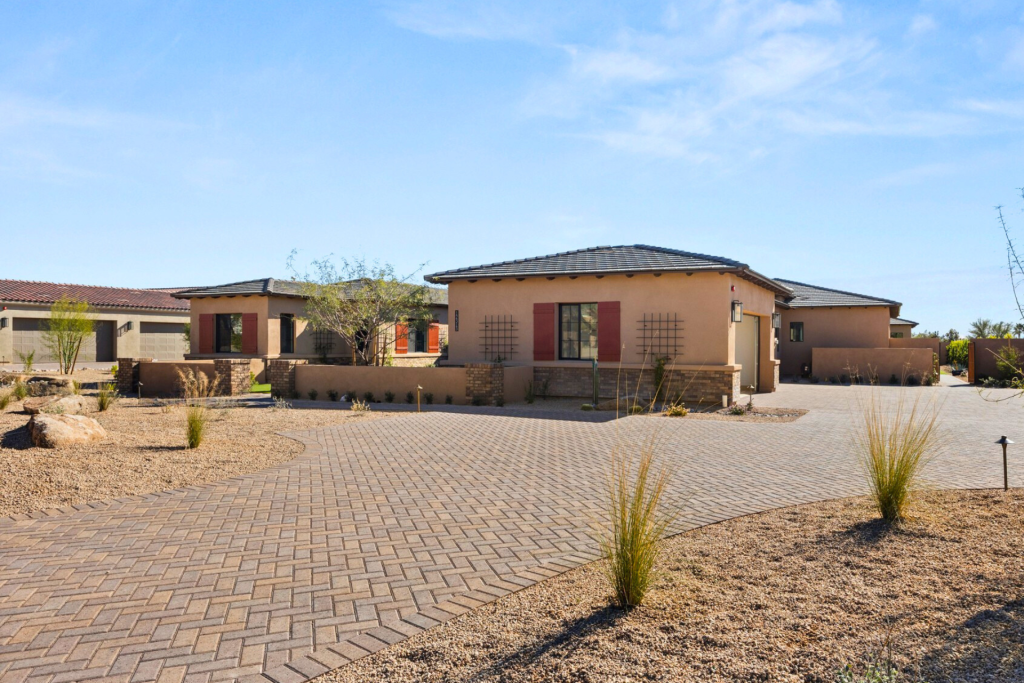 Schedule a tour of an expansive custom home ready now in the Emerald Hills community in Scottsdale. The open-concept design features 5,384 SF, 4 bedrooms, 5.5 bathrooms, an office/exercise room, a gourmet kitchen, an attached casita with a bedroom and kitchenette, and two spacious verandas in the main home for seamless indoor/outdoor living. This home also features a pool house, including a living room, kitchen, bathroom, and a veranda.