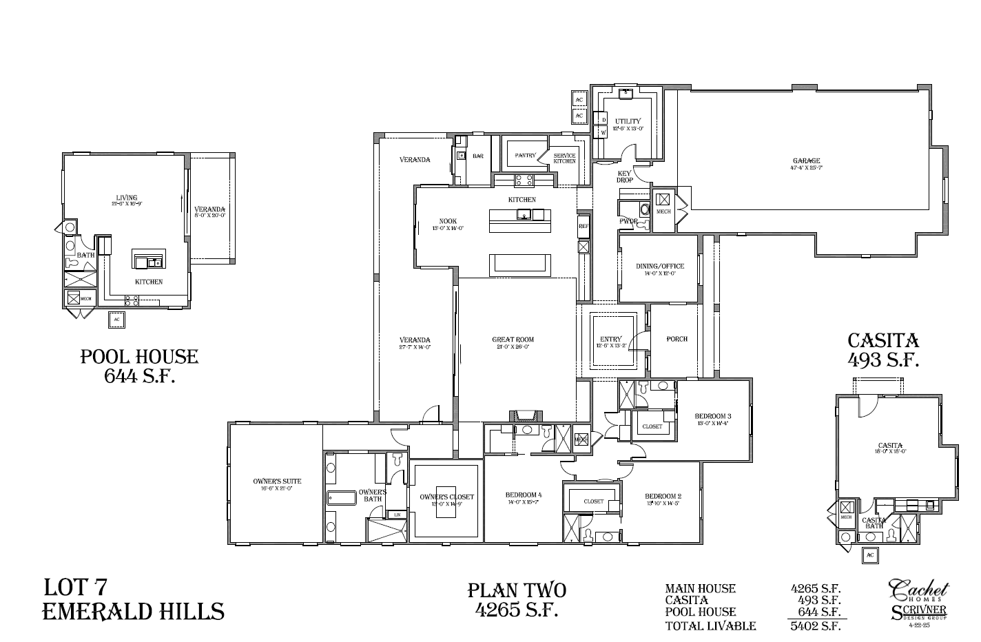 This home also includes a 644 SF pool house and a separate 493 SF casita with kitchenette.